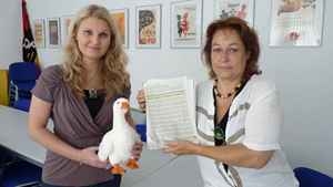 (IINews) - Judith Brettmeister von aktion tier überreichte heute die unterschriebenen Listen mit einer Plüschgans, die symbolisch an die vielen leidenden Gänse und Enten erinnern soll, der Europaabgeordneten Nadja Hirsch, FDP. Die Abgeordnete versicherte: "Mein Ziel ist es, den Konsumenten in Deutschland vor Augen zu führen, welche Qualen die Gänse bei der Produktion erleiden. Einer schön verpackten Dose im Feinkostregal sieht man das tierische Leid nicht an. Wenn wir aufgeklärte Konsumenten wollen, ist diese Diskussion längst überfällig."