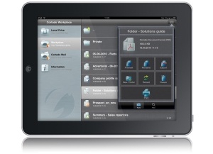 Die kostenlose App Cortado Workplace verwandelt das iPad in einen kompletten mobilen Arbeitsplatz inklusive Cloud-Printing-Funktion für hersteller-, geräte- und rechnerunabhängiges kabelloses Drucken ohne Einschränkungen.