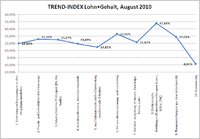 In der Zeit vom 18. bis zum 31. August 2010 führte LOHN+GEHALT zusammen mit der Sage HR Solutions AG (ehemals s+p Software und Consulting AG) die erste Umfrage zum ?Trendindx LOHN+GEHALT? durch. 370 Mitarbeiter der Entgeltabrechnung und Personalverantwortliche aus allen Branchen antworteten auf Fragen zu aktuellen Entwicklungen, Trends und Schwerpunktaufgaben im Bereich der Entgeltabrechnung. 47 Prozent der Befragten gaben an, in der Lohnbuchhaltung zu arbeiten, 27 Prozent haben die Personalleitung in ihrem Unternehmen inne, 15 Prozent arbeiten in der kaufmännischen Abteilung, 6 Prozent sind Geschäftsführer und 5 Prozent der Umfrageteilnehmer aus anderen Abteilungen. Zukünftig wird der Trendindex Lohn+Gehalt viermal jährlich erscheinen.