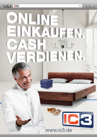 IC3 ist seit Oktober 2010 als erste reine Konsumsuchmaschine mit Cash-Back-Funktion offiziell für den deutschen Markt online. Mit seinem außergewöhnlich fairen Geschäftsmodell steht das Unternehmen für eine ganz neue Suchmaschinengeneration: IC3 gibt nach dem Motto "Online einkaufen. Cash verdienen." grundsätzlich 40 Prozent der Mittler-Provision an den registrierten Konsumenten weiter. Seine Anbieter selektiert IC3 nach Service-Qualität und Seriosität. Die Registrierung eines Kunden erfolgt unter modernsten Sicherheitsvorkehrungen. Zusammen mit einer bis ins Detail ausgefeilten, einfachen Bedienung setzt IC3 damit neue Standards für rundum optimales Internet-Shopping. Aktuell können User unter www.ic3.de zwischen ca. 30 Millionen Qualitätsprodukten von über 1.000 Anbietern wählen. Dieser Service ist kostenlos.