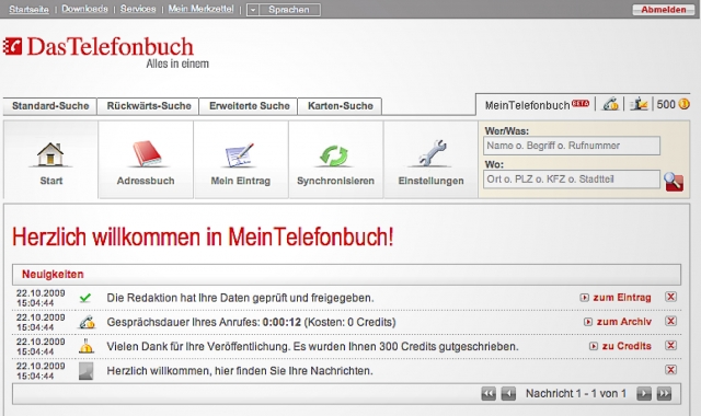 Darüber hinaus bietet das neue Angebot dem Verbraucher die Möglichkeit, den eigenen Eintrag in dastelefonbuch.de selbständig zu erstellen oder zu ändern. Dabei entscheidet der Nutzer individuell, welche Daten er öffentlich freigibt, beziehungsweise welche Daten er verschlüsseln möchte.