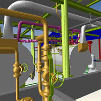 Das neue Zusammenspiel zwischen der Verfahrenstechnik und der 3D-Planung eröffnet in MPDS4 komplett neue Wege für den Anlagenbau. Die in der Verfahrungstechnik geplante Verrohrung der Anlage wird automatisch an die 3D-Planungsdaten übergeben und kann dann genau positioniert werden. Alle aus der Verfahrenstechnik bekannten Attribute werden automatisch in der 3D-Planung übernommen. Genauso können in MPDS4 Stahlkonstruktionen, komplette Gebäude, Klimasysteme oder Kabeltrassen geplant werden. Auch hier wird die hohe Qualität der Planung durch die integrierte Konsistenzanalyse oder die harte und weiche Kollisionsprüfung direkt in den Planungsdaten gewährleistet.
