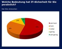 IT-Sicherheit nehmen 83 Prozent der Teilnehmer an der Befragung persönlich wichtig ? so das Ergebnis der Online-Umfrage. 54 Prozent gaben sogar an, dass das Thema ihnen ?sehr wichtig? sei. Ein Resultat, das so schon Lücken offenbart. Abseits der persönlichen Wahrnehmung zeigt die Umfrage erst recht Defizite auf. Selbst etablierte Sicherungsmaßnahmen wie Virenscanner und Firewall setzen nicht einmal ein Drittel der Teilnehmer in ihren Unternehmen ein. Noch dramatischer erscheint das Resultat im Hinblick auf Verschlüsselung: Acht Prozent der Unternehmen setzen eine File-Folder-Verschlüsselung ein, elf Prozent eine Festplattenverschlüsselung, die nur bei Diebstahl schützt, und nur rund 14 Prozent verschlüsseln ihre E-Mails. Beunruhigende Erkenntnis: Knapp ein Drittel der Befragten (28 Prozent) ist in Unternehmen mit mehr als 1.000 Mitarbeitern tätig. ?Leider bestimmen noch zu oft Kostenkalkulationen über den Einsatz von Sicherheitstechnologien. Und weil hier kein ?Return-on-Invest? offensichtlich ist, verzichten unerfreulich viele Unternehmen auf geeigneten Schutz?, deutet Dr. Volker Scheidemann, Marketingleiter bei apsec, die ermittelten Ergebnisse. Apsec stellt regelmäßig aktuelle Fragen rund um die Sicherheit von Daten und Computernetzwerken zur Abstimmung.