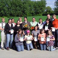 (IINews) - Diesmal wurde der Kurs nicht über mehrere Wochenenden, sondern kompakt in der zweiten Woche der Osterferien angeboten. Fünf Vormittage lernten die Kursteilnehmer unter Leitung von Trainerin B Jana Blümel fleißig für die Prüfung – mit Erfolg. Gisela Frey, Richterin der Deutschen Reiterlichen Vereinigung, hatte schon an den letzten beiden Terminen die Prüfungen auf dem Wiesenhof abgenommen – und sich auch diesmal gut vorbereitet. „Ihr hier vom Verein seid immer so fit in den Themen, da muss ich richtig aufpassen, dass ich nichts vergesse zu fragen!“ begrüßte sie die nervösen Prüflinge aufmunternd.