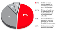 Lediglich 7 Prozent (73) haben nach eigenen Angaben volles Vertrauen in das staatliche Sicherheitskonzept des neuen Personalausweises. Diese Nutzer möchten den Ausweis - wie von den Behörden vorgesehen - auch für Aktivitäten im Internet zum Einsatz bringen. Weitere 7 Prozent (68) sind beim Thema nPA noch vollkommen unbefangen. Diese Nutzer gaben im Rahmen ihrer Antworten an, sie würden zum ersten Mal von dem neuen Ausweis hören.