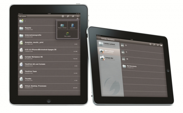 Cortado Corporate Server vereinfacht das Zugreifen auf Dateien im Unternehmensnetzwerk gemäß den definierten Nutzerrechten und integriert die entsprechenden Ressourcen in das iPad, so dass Mitarbeiter eines Unternehmens über sämtliche klassische Desktop-Funktionen verfügen. Dokumente können direkt aus dem Unternehmensnetzwerk an Empfänger aus dem iPad-Adressbuch geschickt werden. Ebenso lassen sich Dokumente, die beispielsweise in Pages erstellt wurden, über einen Netzwerkdrucker des Unternehmens oder unterwegs an einem WLAN- oder Bluetooth-fähigen Drucker ausdrucken, z.B. im Hotspot eines Hotels. Zusätzlich können iPad-Nutzer Datenbank-Berichte abrufen, Dokumente im Netzwerk ablegen, faxen oder Dateien in eine PDF- oder Zip-Datei umwandeln. Diese Vorgänge können zentral gesteuert und verfolgt werden.