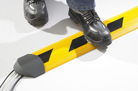 Neuartige Security-Kabelbrücken mit Warnstreifen in gelb-schwarz verhindern Stürze über Kabel