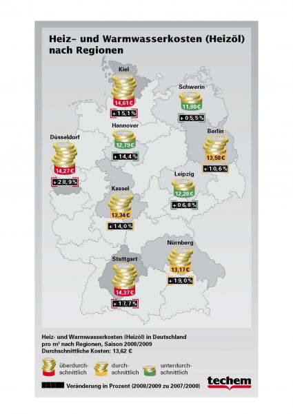 Heiz- und Warmwasserkosten in einzelnen Regionen Deutschlandweit