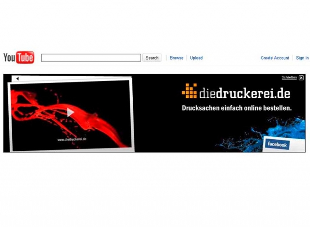 diedruckerei.de wirbt auf Startseite von YouTube