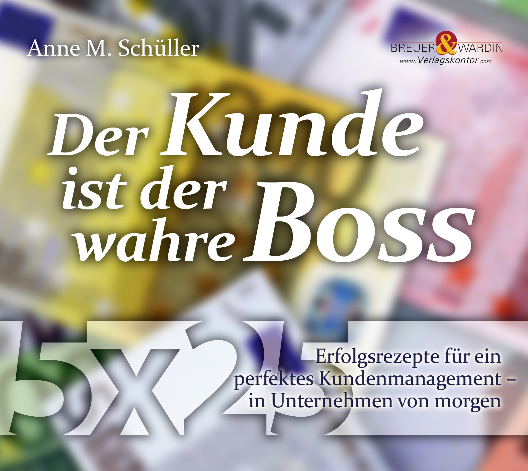 Für Unternehmen, die in Zukunft nicht nur eine Nebenrolle spielen wollen, hat die Perfektion ihres Kundenmanagements oberste Priorität. Wie man dieses Ziel erreicht, erklärt Anne M. Schüller, eine der gefragtesten Business-Speaker im deutschsprachigen Raum, in einem fünf CDs umfassenden Audio-Ratgeber, der bei Breuer & Wardin Verlagskontor erschienen ist. Der Kunde ist der wahre Boss liefert 5 x 25 Erfolgsrezepte in den Bereichen Empfehlungsmarketing, Bestandskundenpflege, Kundenrückgewinnung sowie Verkaufen und Führen in neuen Zeiten.