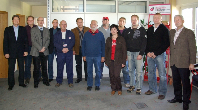 Bereits seit 30 Jahren ist Karl Milz beim Ziegelwerk Klosterbeuren. Außerdem wurden ausgezeichnet: Mario Goldschmiedt und Alexander Eldracher (20 Jahre), Ulrich Wolff und Beate Ruef (15 Jahre) sowie Werner Holfeld, Christian Herzer, Thomas Gänsler und Adolf Braun (alle zehn Jahre).