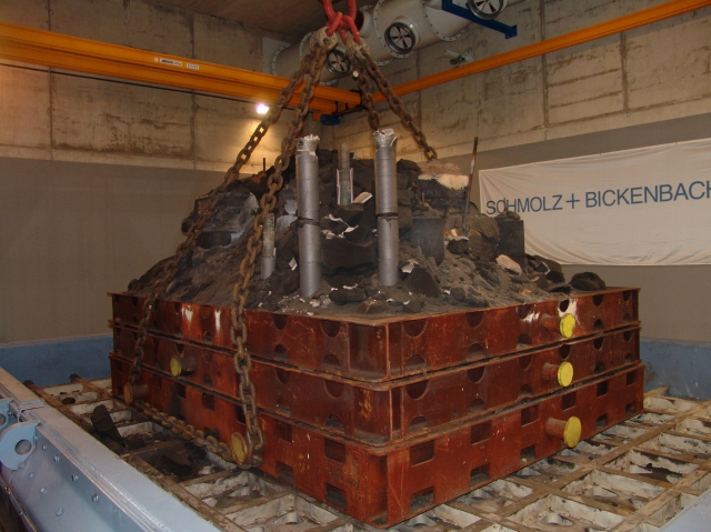 Der neue, 5,30 x 6,80 Meter große zweiteilige Auspackrost verfügt über ein Eigengewicht von je 66 Tonnen und kann ein Gewicht von 80 Tonnen tragen. Der Formsanddurchsatz liegt bei 40 Tonnen pro Stunde. "Uns ist es wichtig, nachhaltig zu arbeiten", unterstreicht Pampus-Meder. Der "ausgepackte" Formsand wird deshalb über zwei Stauförderrinnen in zwei Vibrationsbrecher transportiert, - dort zerrieben und über pneumatische Schubförderer der Formstoffregeneration zugeführt. Für eine Reduzierung der Staubemission sorgt ein eigens entwickeltes Absaugkonzept. "Wir stellen die umweltverträgliche Entstaubung der Luft über eine Anlage mit einer Saugleistung von 150.000 m3 pro Stunde sicher", so Pampus-Meder. Dadurch liegt der Feinstaubausstoß erheblich unter den gesetzlich vorgeschriebenen Grenzwerten.