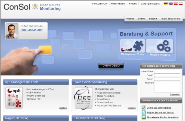 "Mit dem neuen Geschäftsbereich möchten wir das in unseren Abteilungen unabhängig voneinander gewachsene Know-how zu einem Kompetenz-Cluster bündeln. Da wir interdisziplinär arbeiten und auch beim Thema Monitoring ständig über den Tellerrand blicken, erkennen wir schneller die Achillesfersen der IT unserer Kunden. So haben Java-Experten von Consol das Framework jmx4perl geschaffen, mit dem erstmalig ein umfassendes und unkompliziertes Monitoring von JEE-Servern mit Nagios möglich wurde", erklärt Gerhard Laußer.