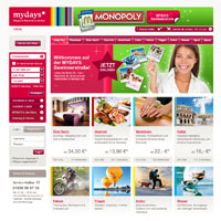 Erlebnisgeschenk-Experte MYDAYS ist Premium-Partner beim Monopoly bei McDonald's 2010 und stellt insgesamt zwei Millionen Euro in bar sowie 22 Millionen Rabatt-Gutscheine zur Verfügung.