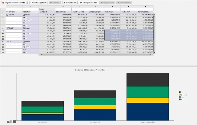 Leichte Bedienbarkeit des PPM Analyzer für CA Clarity war den Entwicklern bei Contec-X ebenso wichtig wie die klare Visualisierung der Analyseresultate. Nutzerdefinierte Formelfelder, ergebnisbedingte Formatierung, Excel-ähnliche Arbeitsblätter und nicht zuletzt die Arbeit per Drag and Drop vereinfachen die intuitive Handhabung erheblich. Die grafische Darstellung erfolgt zudem in Echtzeit: u. a. durch Balken-, Linien- oder Tortendiagrammen.