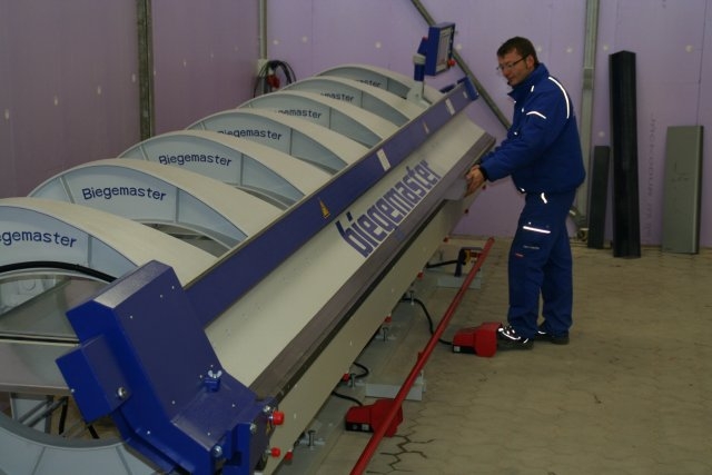 Mit der drei Meter Kantbank ging es 2008 los, bereits nach wenigen Monaten war sie ausgelastet. Zusätzlich wurde der Bedarf nach längeren Kantteilen immer größer und nun Rechnung getragen: eine sechs Meter Abkantbank der Firma Biegemaster wurde am heuten 24. November in Dienst gestellt