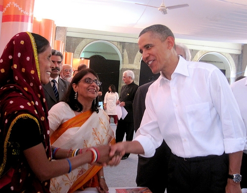 "Präsident Obama trifft die Panchayat Präsidentin Sharmi Bai"