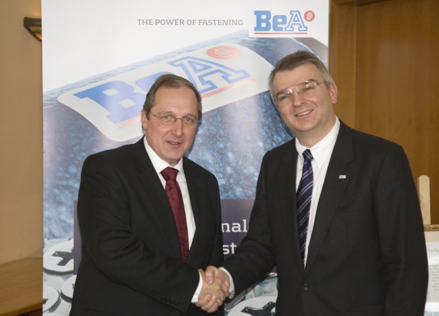 (IINews) - Hamburg, 03.12.2010. Abschluss eines erfolgreichen Jubiläumsjahres: Der Ahrensburger Befestigungssystem-Spezialist Joh. Friedrich Behrens AG hatte am Freitag seine internationalen Geschäftspartner nach Hamburg geladen, den Ort der Gründung vor 100 Jahren. "BeA ist ein mittelständisches Unternehmen par excellence", betonte Schleswig-Holsteins Wirtschaftsminister Jost der Jager und lobte die Innovationskraft, die BeA immer wieder mit seinen neuen Produkten beweist. Seit Frühjahr 2010 hatte das Unternehmen seine Marktposition mit einer Innovationsoffensive gestärkt. "Wir wollen mit den besten Geräten und dem besten Service den Erfolg unserer Kunden stützen", sagte Vorstand Tobias Fischer-Zernin, der dabei aber gleich Pläne für die Zukunft bekannt gab. Das Unternehmen, das 2010 eine Reihe hocheffizienter Geräte für Holzbau, Bauhandwerk und automatisierte Industriefertigung auf den Markt gebracht hat, will bei innovativen Befestigungssystemen auch künftig den Takt angeben.