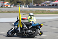 Motorrad-Schräglagen-Training am Stand des FSZ Hansa/Lüneburg