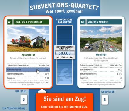 Neues Internet-Spiel zum Subventionsabbau: / Subventions-Quartett: Wer spart, gewinnt! (mit Bild)