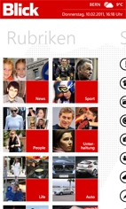Neben News, die in verschiedene Rubriken unterteilt sind (u.a. News, Sport, Auto, People), bietet die Windows Phone 7 App seinen Usern eine Vielzahl von aktuellen Videos und Bildergalerien. Über die Funktion "Blick-To-Go" können die Nutzer Rubriken herunter laden und offline lesen. Artikel lassen sich interaktiv kommentieren, Leserreporter können der Redaktion via iPhone Themenvorschläge unterbreiten sowie eigene Fotos hoch laden. Wetterinformationen für die Schweiz und Europa runden das inhaltliche Angebot der App ab. Darüber hinaus lässt sich auch die gedruckte Ausgabe des Blick als PDF-Datei lesen. Die App präsentiert die Inhalte mit Hilfe einer Vielzahl dreidimensionaler Animationen über eine innovative Nutzerführung.