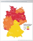 Auch bei den prozentualen Veränderungen gegenüber 2009 sind deutliche regio-nale Unterschiede zu erkennen. Lediglich 3 der 16 Bundesländer weisen hier einen Rückgang auf: Brandenburg mit 4,4 Prozent weniger Fällen, gefolgt von Sachsen-Anhalt (minus 1,2 Prozent) und dem Saarland (minus 0,9 Prozent). Einen zweistel-ligen Anstieg müssen hingegen Thüringen (22,2 Prozent), Nordrhein-Westfalen (plus 12,3 Prozent) und Berlin (plus 11,2 Prozent) verkraften.