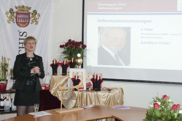 Nach der Kaffepause mit selber gebackenen Kuchen fleißiger Mitarbeiter ging es zum nächsten Punkt Veranstaltung: Auszeichnungen und Ehrungen von Mitarbeitern und Vertriebspartnern der Monarchis. "Wir brauchen motivierte und engagierte Mitarbeiter, die auf ihrem Gebiet die Besten sind, echte Profis - und die haben wir", eröffnete Frau Schneider die emotionale, immer wieder mit Applaus unterbrochene feierliche Zeremonie. Es wurden die Sieger des Jahresendwettbewerbs, die Jahresbesten ihrer Abteilung und herausragende Leistungen gewürdigt.