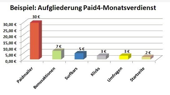 Paid4-Dienste können keinen Hauptverdienst ersetzen, da die Vergütung pro Klick oft unter einem Cent liegt. Als geregeltes Nebeneinkommen sind jedoch für Anfänger bereits zwischen 25 und 50 Euro monatlich möglich, später auch mehr. So kann man sich schon mal ohne großen Aufwand kleine Wünsche erfüllen und finanzielle Engpässe ausgleichen. Eine genaue Anleitung zu Paid4-Diensten mit wertvollen Tipps und dem Nachweis, dass es wirklich funktioniert, gibt es auf adiceltic.de (http://www.adiceltic.de). Hier finden Interessierte auch aktuelle Versandstatistiken von über 50 deutschen Paidmailern, News, Umfragen und Auszahlungsnachweise in Form von Screenshots.