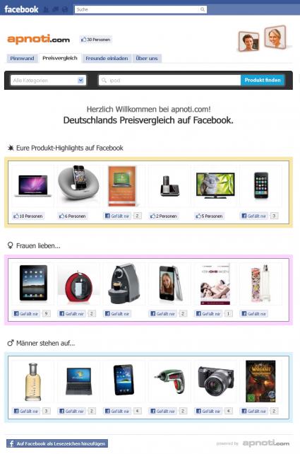 "apnoti.com eröffnet Echtzeit-Preisvergleich auf Facebook mit über 10.000 Online-Shops! (mit Bild)"