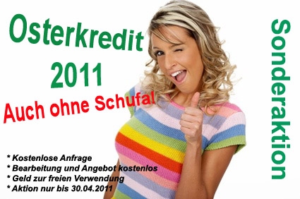 "Der Osterkredit 2011: Kredit auch ohne Schufa - Sonderaktion nur bis 30.04.2011!"