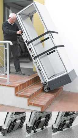 Die "Sackkarre mit Motor", wie das nützliche Hebegerät auch genannt wird, ermöglicht den einfachen Transport von Schaltschränken über Stufen hinweg. Das neue Hubgerät erlaubt es einer Person problemlos, Schaltschränke mit einem Gewicht von bis zu 540kg über Stufen hinweg zu bewegen.