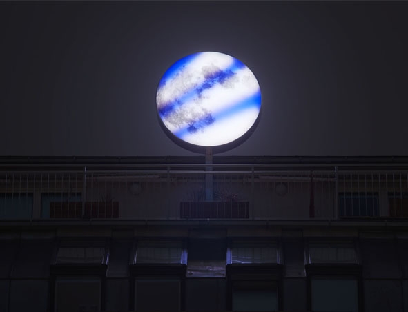 Die Hülle des "Moonwalk" besteht aus satiniertem Glas und einem die Mondfläche darstellenden Siebdruck. Den Vorgaben des Künstlers entsprechend entwarf Zumtobel für die Skulptur eine LED-Matrix, die im Außenbereich einsetzbar ist und dem hohen lichttechnischen und ästhetischen Anspruch des Bauherren und des Künstlers gerecht wird. In der konstruierten Ronde sind über 400 LED-Leuchten Capix verbaut. Eingesetzt als Plug & Play Lösung sind die LED-Leuchten mit einer Steuerung versehen. So können mit Capix nicht nur verschiedene Farben und Farbverläufe, sondern auch vollständige Bildsequenzen und Botschaften auf der Mond-Oberfläche abgespielt werden. Die spezielle, vorkonfektionierte Lichtlösung wurde schließlich vor Ort in das Kunstobjekt eingebaut. www.zumtobel.com