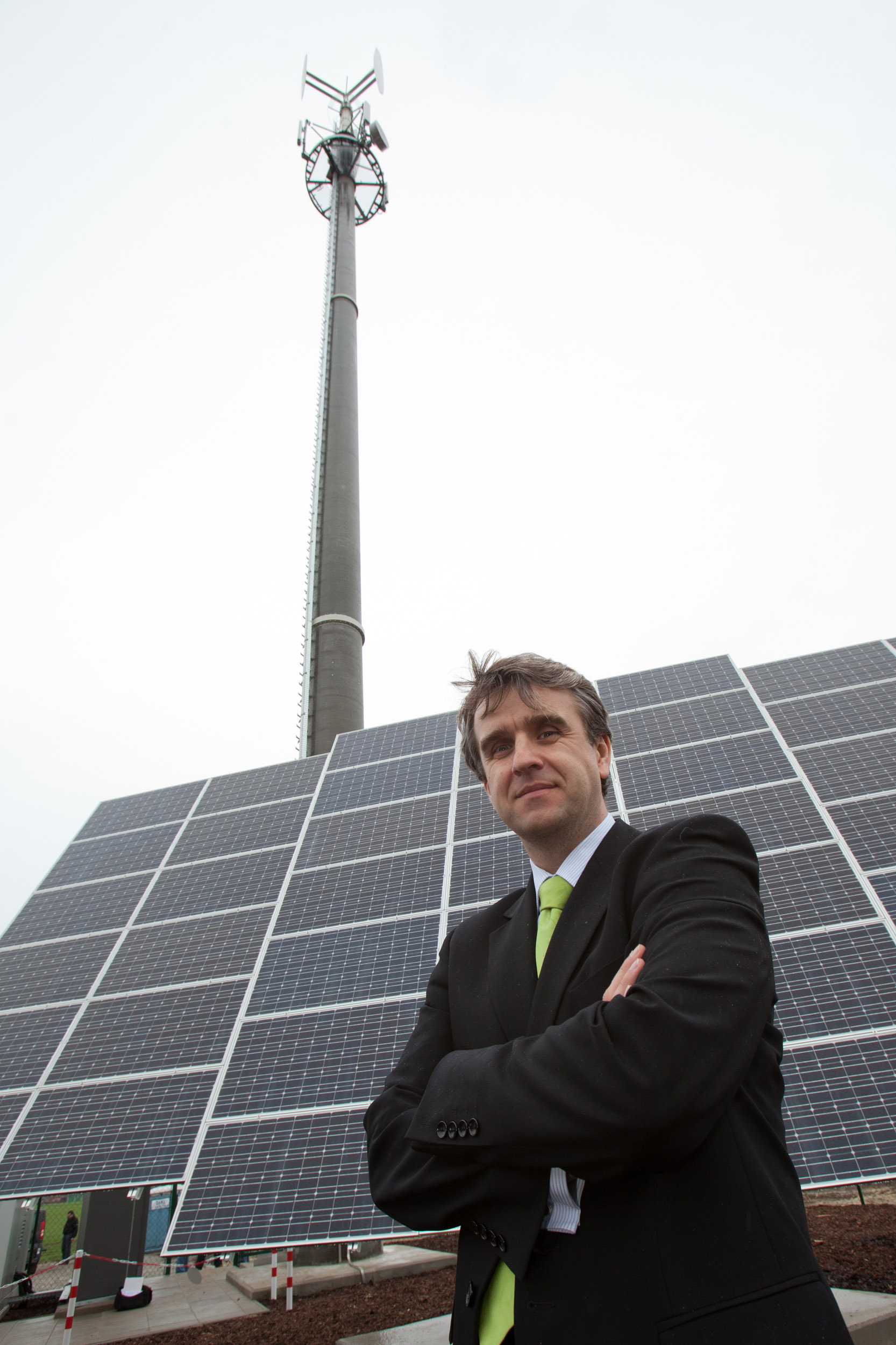 Grüne Energie für den Mobilfunk geht in Versmold auf Sendung. E-Plus Geschäftsführer Rafal Markiewicz am 31. März 2011 vor der ersten energieautarken Mobilfunk-Sendestation Deutschlands.