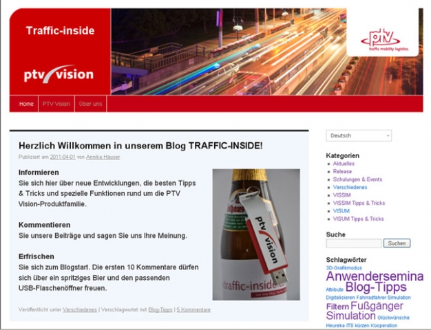 (IINews) - Karlsruhe, 06.04.2011. Mit Traffic-inside.de ging jetzt das erste Blog im Bereich Verkehrsplanung live. Das Blog liefert Informationen rund um die Produktlinie PTV Vision. Die Resonanz ist positiv: Mehr als 90 Kommentare hinterließen Nutzer allein in den ersten drei Tagen.