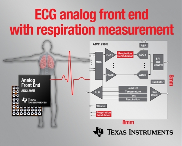 TI erweitert Produktfamilie der analogen EKG/EEG-Frontends um On-Chip-Atemmessung und vereinfacht da