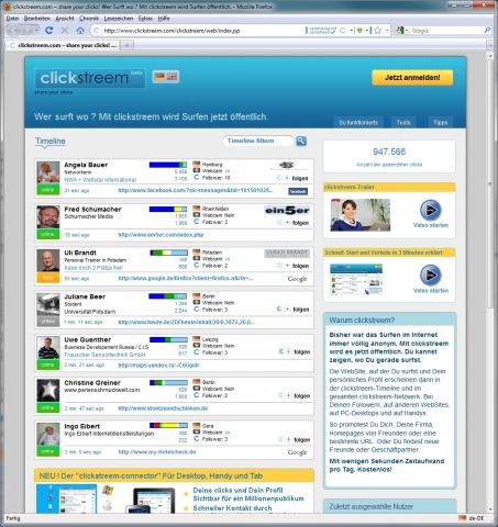 "Wer surft wo? Mit clickstreem wird Surfen jetztöffentlich"