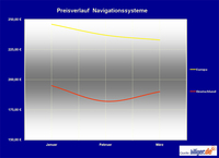 Bei Navigationsgeräten inklusive Deutschland-Karten stiegen die Durchschnittspreise, Navigationssysteme mit Europakarten wurden günstiger