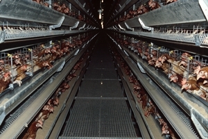 -Herkömmliche Käfige ("Legebatterien") sind in Deutschland seit 2010 endgültig verboten und sollen europaweit ab 2012 verboten sein. Jede Henne hat darin weniger als ein DIN A4-Blatt Platz (550 cm²).