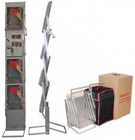 Als schönen Nebeneffekt bietet dieses faltbare Modell die Möglichkeit, den Ständer bereits im Büro mit Prospekten und Broschüren zu bestücken und vor Ort nur noch auseinander zu ziehen.