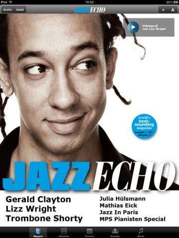(IINews) - (Berlin, 28.04.2011) Die Berliner Internet-Agentur Digiden (http://www.digiden.de) hat für die Universal Music GmbH die iPad App des Magazins JazzEcho erstellt. JazzEcho ist das Marken-Genreportal für Jazz bei Universal Music und erschien bisher als Print-Magazin sowie als Portal-Website. Ab sofort ist JazzEcho als erstes und einziges deutsches Musikmagazin auch als kostenlose App im iTunes Store erhältlich.