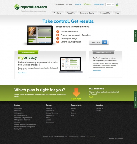(IINews) - Berlin / San Francisco, 17. Mai 2011 - Der internationale Dienstleister und Marktführer im Bereich der Online-Reputation und Schutz der Online-Privatsphäre Reputation.com vermittelt mit dem Re-Design seiner Website (www.reputation.com) nun sein erweitertes Angebot zur aktiven Kontrolle persönlicher Informationen im Internet. Neben der bereits zu Beginn des Jahres erfolgten Namensänderung von ReputationDefender.com in Reputation.com verdeutlicht zudem das neue Logo und die Erweiterung des Portfolios mit neuen Produkten die umfassende Ausrichtung des Unternehmens.