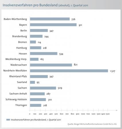 Pleiten, Bayern (911) und Niedersachsen (821). Relativ betrachtet