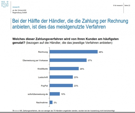 Rund ein Viertel der deutschen Onlinehändler geben an, Zahlungsausfälle seien für sie existenzbedrohend - so das erschreckende Ergebnis der aktuellen e-Kix-Befragung des E-Commerce-Center Handel. Fast die Hälfte (45,1 Prozent der Befragten) bietet deswegen Zahlungsarten wie Rechnung oder Lastschrift gar nicht erst an. "Ein Fehler", erklärt Alexander Ringsdorff, E-Commerce-Berater bei Tradoria, "denn wenn Händler kundenfreundliche Zahlverfahren wie Rechnung oder Lastschrift nicht anbieten, riskieren sie, dass Kunden den Kauf im letzten Moment, beim Checkout Vorgang, abbrechen." So werden gewaltige Potenziale verschenkt, denn laut einer aktuellen Studie von ibi research ist bei der Hälfte der Händler, die im Online Shop Zahlung per Rechnung anbieten, dies das von Kunden meistgenutzte Verfahren.