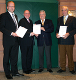 (PresseBox) - Das RAL-Gütezeichen Rohrbefestigung ist jetzt erstmals für Rohrschellen mit Einlage verliehen worden. Im Rahmen der Jahres-Mitgliederversammlung konnte Holger Mietzner, Gütegemeinschafts-Geschäftsführer, an Martin Schneider von der Firma Mefa sowie Jan van Walraven und Oswald Lindner von der Firma Walraven die entsprechenden Urkunden übergeben. Das Gütezeichen der RAL Gütegemeinschaft Rohrbefestigung e. V. ist eine weltweit einmalige Einrichtung. Die Einhaltung der Richtlinien gewährleistet das renommierte Materialprüfungsamt in Dortmund (MPA).