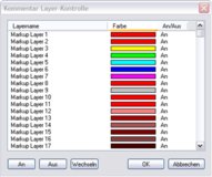Moderne Kommentierungswerkzeuge bestehen heute aus vielen Elementen: Text, Freihandstift , Polylinien, Flächenformen, Schraffuren, Linientypen, Marker, Bemaßungstools usw. Eine variable Layerstruktur erlaubt die Strukturierung von Kommentaren nach Benutzern oder Funktionsebenen. Sie können die Layer beliebig benennen, z.B. "Erdgeschoss", "Keller", "Mauerwerk" usw. Mit Rasterex Kommentierungstechnologie können Benutzer im Netzwerk zusammenarbeiten. Die Kommentierungsmodule werden zentral eingerichtet und verwaltet. Es können Layer mit verschiedenen Farben angelegt, diese wiederum verschiedenen Benutzern oder Benutzergruppen zugeordnet werden.