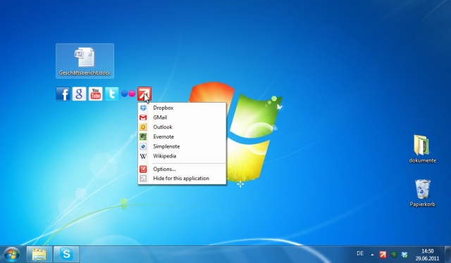 Keine Tastenkombination wird täglich öfter gedrückt als "STRG+C". Ist click.to erst einmal auf dem Computer installiert, tauchen beim Drücken der Tastenkombination STRG+C bzw. Rechtsklick-Kopieren, neben dem Mauszeiger kleine Buttons (sogenannte Satelliten) mit Schnellwahlfunktion auf. Auch lässt sich ein Drop-Down-Menü mit weniger häufig genutzten Links öffnen. Möchte man jetzt beispielsweise fünf Bilder bei Flickr uploaden, reicht die Markierung der Bilder im Explorer, STRG+C und die Auswahl des Satelliten "Auf Flickr hochladen" und schon sind die neuesten Urlaubsfotos mit Freunden geteilt.