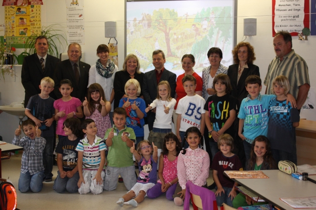 Musikunterricht in der Klasse 2c der Haidwaldschule: Das neue Whiteboard erlaubt es, den Schülern den Unterrichtsstoff interaktiv zu vermitteln. Es gleicht einer großen Tafel, auf der die Kinder wie gewohnt mit vielerlei Stiften schreiben können. Gleichzeitig ist es aber auch ein großer Touchscreen, der mit einem Computer verbunden ist. Auch Musik, Bilder und Videos lassen sich darauf abspielen. Dank Sensoren haben Lehrer und Schüler die Möglichkeit, den Computer über "die Tafel" zu bedienen. Das eröffnet vielfältige Möglichkeiten.