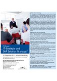 Erleben Sie einen spannenden Austausch mit Fachexperten aus Beratung und Praxis von Unternehmen, wie Novartis Pharma, SMA Solar Technology und der SAP, zu aktuellen Strategien in der IT und dem SAP Solution Manager als Werkzeug zur effizienten und prozessbasierten Harmonisierung, Instandhaltung und Pflege von SAP-Landschaften.