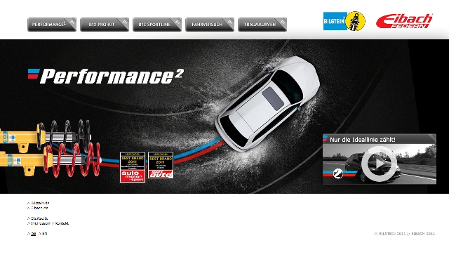 Neben Anzeigen, Händlerwerbung und redaktionellen Kooperationen mit Fachmedien liegt der Fokus der Kampagne auf der Microsite www.performance2.info. Hier stehen die Aktion „Traumkurven“ und der Imagetrailer „Nur die Ideallinie zählt!“ im Mittelpunkt. Darüber hinaus werden die Produktmerkmale und Vorteile des B12 vorgestellt, unmittelbar verknüpft mit Onlinekatalog und Händlersuche zur aktiven Vertriebsförderung. „Wir haben eine Kampagne entwickelt, die modern und spritzig ist, ohne das wichtigste Argument aus den Augen zu verlieren: die Qualität des Fahrwerks“, erklärt Torsten Kusmanow, Inhaber der Agentur FORCE. „Bilstein und Eibach sind etablierte Anbieter im Automotive Aftermarket und Erstausrüster im Premium- und Sonderseriensegment. Erst kürzlich wurden beide zum erneuten Mal bei Leserwahlen in der Fachpresse zu „Best Brands“ gekürt. Beide Marken stehen für innovative Technologien ‚Made in Germany‘. Entsprechend wertig sollte die Kampagne sein.“