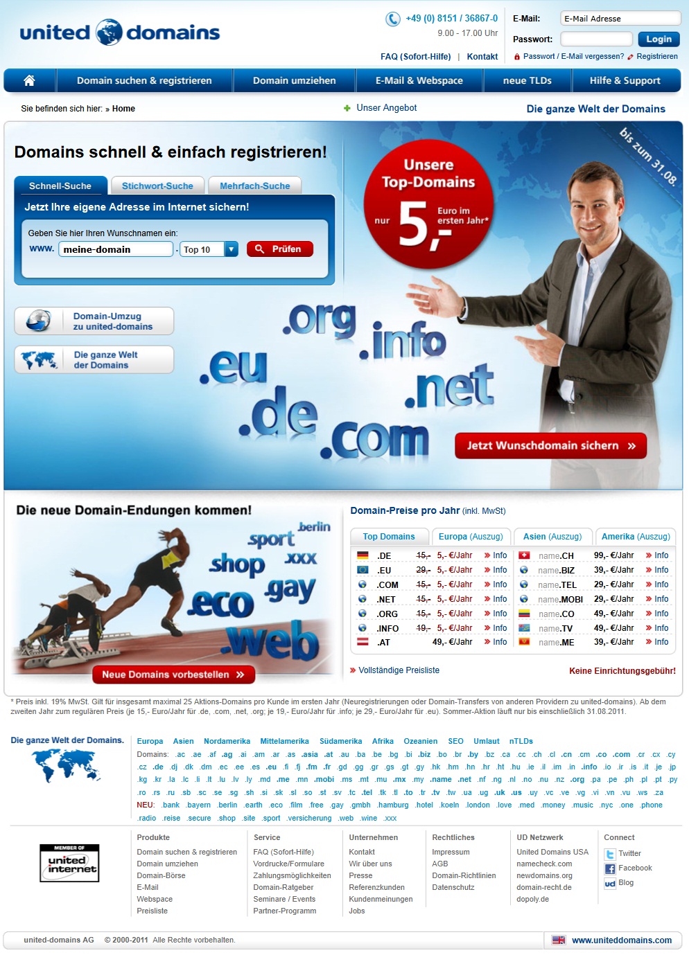 united-domains startet Sonderaktion für Bestands- und Neukunden: Domains unter den Kennungen .de, .com, .net, .org, .info, .eu für nur fünf Euro im ersten Jahr